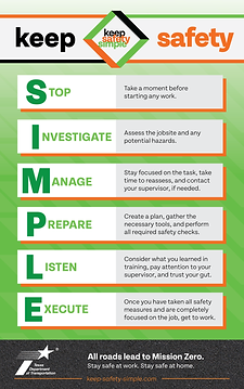 Below are resources developed for the KSS campaign. Resources will be posted around TxDOT Austin District offices, placed in meeting rooms and handed out to employees to serve as a reminder to keep safety top of mind at all times.